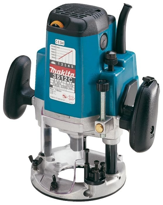 Фрезер Makita 3612 C - это мощный инструмент профессионального класса. С его помощью на производствах делают фигурные пазы, кромки, фаски. От царапин на материале заготовок защищает опорная платформа из литого алюминия. Встроенная электроника делает работу с инструментом более удобной, она поддерживает постоянное число оборотов и снижает вероятность получения травмы. Прозрачный щиток, расположенный внизу инструмента, и возможность подключения пылесоса способствуют сохранению рабочего места в чистоте