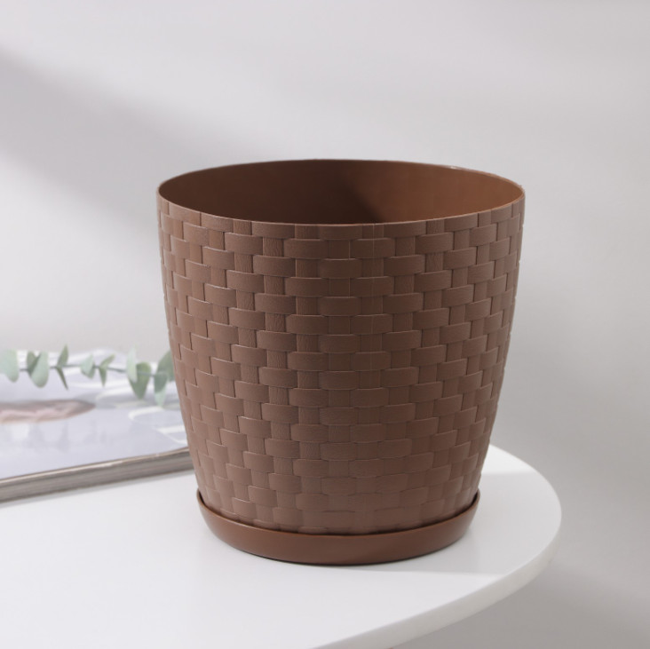 Горшок для цветов с поддоном Ротанг 3 л тёмно-коричневый
