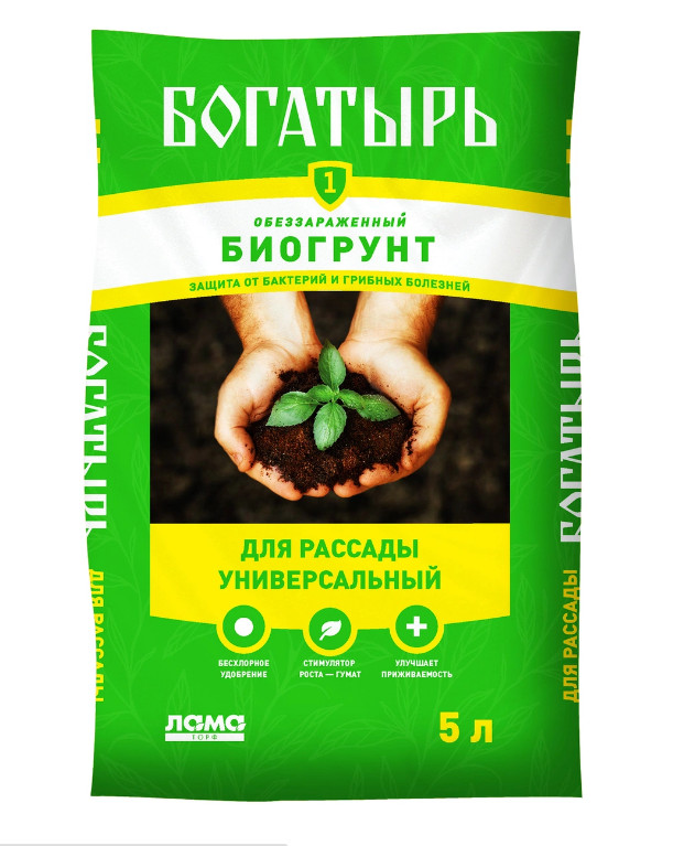 Пакет, готовый субстрат для выращивания рассады овощных и декоративных культур на основе верхового и низинного торфа. Содержит бактерии Bacillus subtilis, которые подавляют патогенные микроорганизмы (в том числе возбудителей черной ножки рассады), стимулируют рост корневой системы, улучшают питание, повышают плодородие. Содержит смачивающий агент благодаря которому грунт быстрее напитывается влагой. СОСТАВ Торф верховой, торф низинный, песок, известняковая (доломитовая мука), комплексное минеральное удобрение, Bacillus subtilis, смачивающий агент, гумат. Содержание макроэлементов: N – 300, P – 30, K – 400 мг/л Содержание микроэлементов: S Mg Ca B Fe Zn Mo Cu Mn pH 5,5-6,5 Первый Биогрунт, который полностью защищен от бактерий и заболеваний. быстрые всходы мощный рост оптимальные водно-воздушные свойства питание на весь период роста