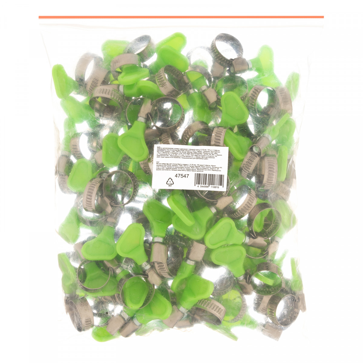 Металлические хомуты Сибртех 47547 с элементом крепления в форме ключа, с диаметром охвата 12-20 мм, 100 шт. в упаковке, используются для соединения труб и шлангов. Подходят для многократного применения. Стяжки-хомуты затягиваются посредством винта-барашка, поэтому для их установки не требуются дополнительные инструменты.