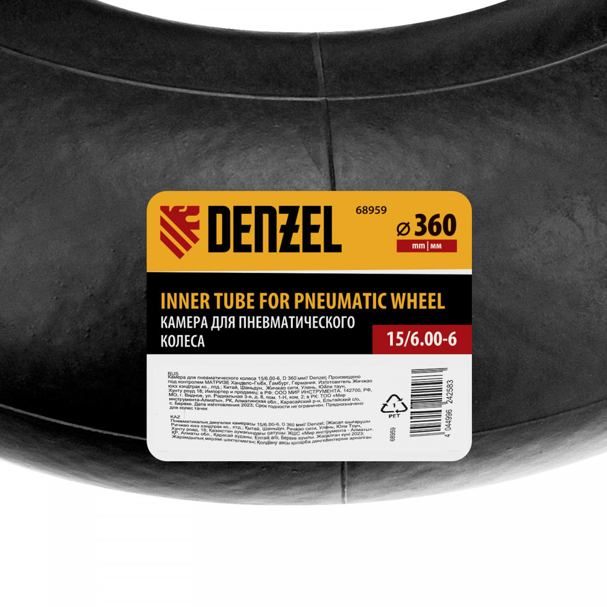 Камера для пневматического колеса 15/6.00-6, D 360 мм Denzel