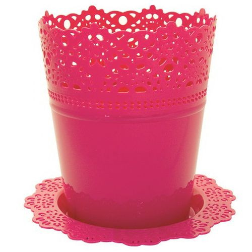 Кашпо Ажур с подставкой, малиновый. Диаметр: 15 см.