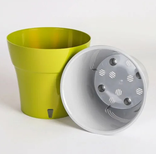Горшок подходит для выращивания растений в домашних условиях.Надежность. Выполнен из прочного пластика, устойчивого к механическим повреждениям, воздействию солнца и холода.Внутренняя емкость оснащена дренажными отверстиями, которые обеспечивают циркуляцию воздуха и обеспечивают эффективное увлажнение корней.Внешняя емкость оснащена резервуаром для воды и имеет прозрачное окошко для удобства контроля за уровнем жидкости.