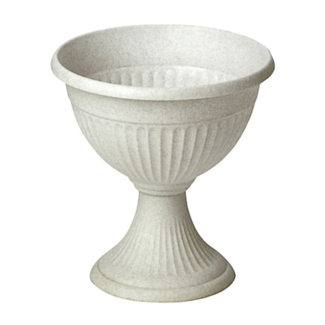 Кашпо-вазон пластиковое 12,0л Ливия низкий на ножке белая глина