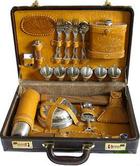 Стопки из нержавеющей стали – 6 шт.Нож раскладной с консервооткрывателем (орех) - 1 шт.Нож туристический с художественной росписью из нержавеющей стали 65Х13 в кожаном чехле - 1 шт.Топор кованый, никелированный в кожаном чехле - 1 шт.Штопор цельнометаллический - 1 шт.Зажигалка бензиновая - 1 шт.Шампура из нерж. стали - 6 шт.Тарелки из нержавеющей стали - 6 шт.Вилки с художественной росписью из нерж. стали, с нитрит - титановым покрытием - 6 шт.Ложки с художественной росписью из нерж. стали, с нитрит - титановым покрытием - 6 шт.Фляга в кожаном чехле - 1 шт.Термос в чехле искусственная кожа из нерж. стали. - 1 шт. Этот набор содержит все необходимое для Вашего комфортного отдыха.Весь комплект размещается внутри кейса.Набор легко переносить и он занимает мало места.Все предметы закрепляются застежками.