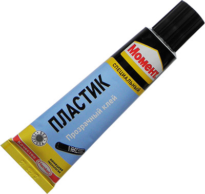 Клей прозрачный специальный Момент-Пластик. Идеально для склеивания в различном сочетании таких материалов, как: полистирол, полиуретан, жесткий и мягкий поливинилхлорид.Склеиваемые поверхности должны быть сухими и чистыми. Для достижения наилучшего результата поверхности следует зачистить наждачной бумагой и обезжирить бензином или ацетоном.