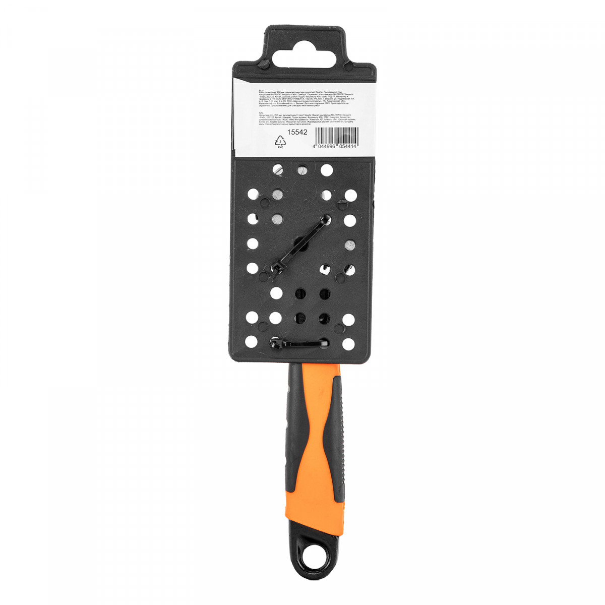 Разводной ключ Sparta 15542 длиной 200 мм, с двухкомпонентной рукояткой, имеет регулируемый зев и подходит для работы с любыми крепежными деталями диаметром до 25 мм, в том числе нестандартными. Инструмент заменяет целый комплект гаечных ключей и пригодится для бытового применения.