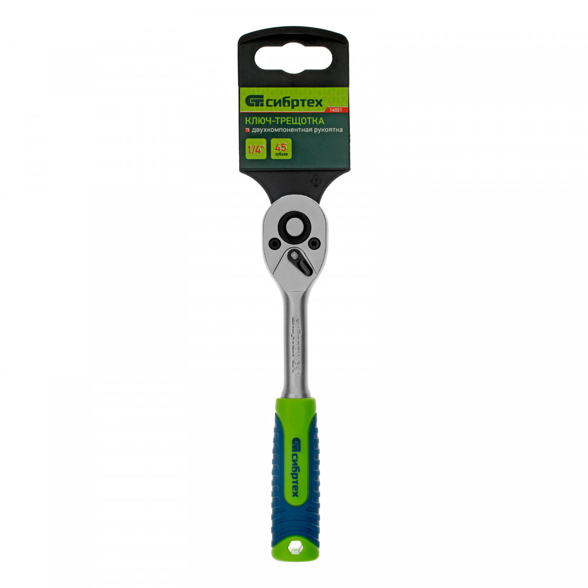 Ключ-трещотка 1/4", 45 зубьев, с быстрым сбросом, матовый хром Сибртех