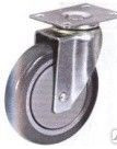 Колесные опоры аппаратные поворотные, термо-пластичная серая резина, полипропиленовый обод, платформенное крепление, шарикоподшипник.