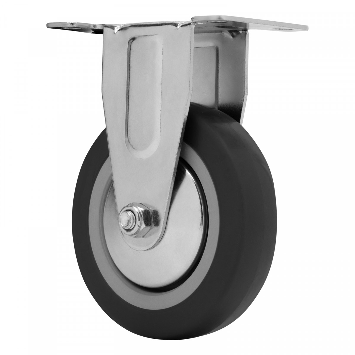Колесо неповоротное Сибртех 68709 диаметром 100 мм, с платформенным креплением, обладает грузоподъемностью 65 кг и устанавливается на ручные тележки. Благодаря шине из прочной резины не повреждает поверхность и не издает шума при движении. Колесо служит для перемещения грузов по прямолинейной траектории в производственных и складских помещениях, а также под открытым небом.