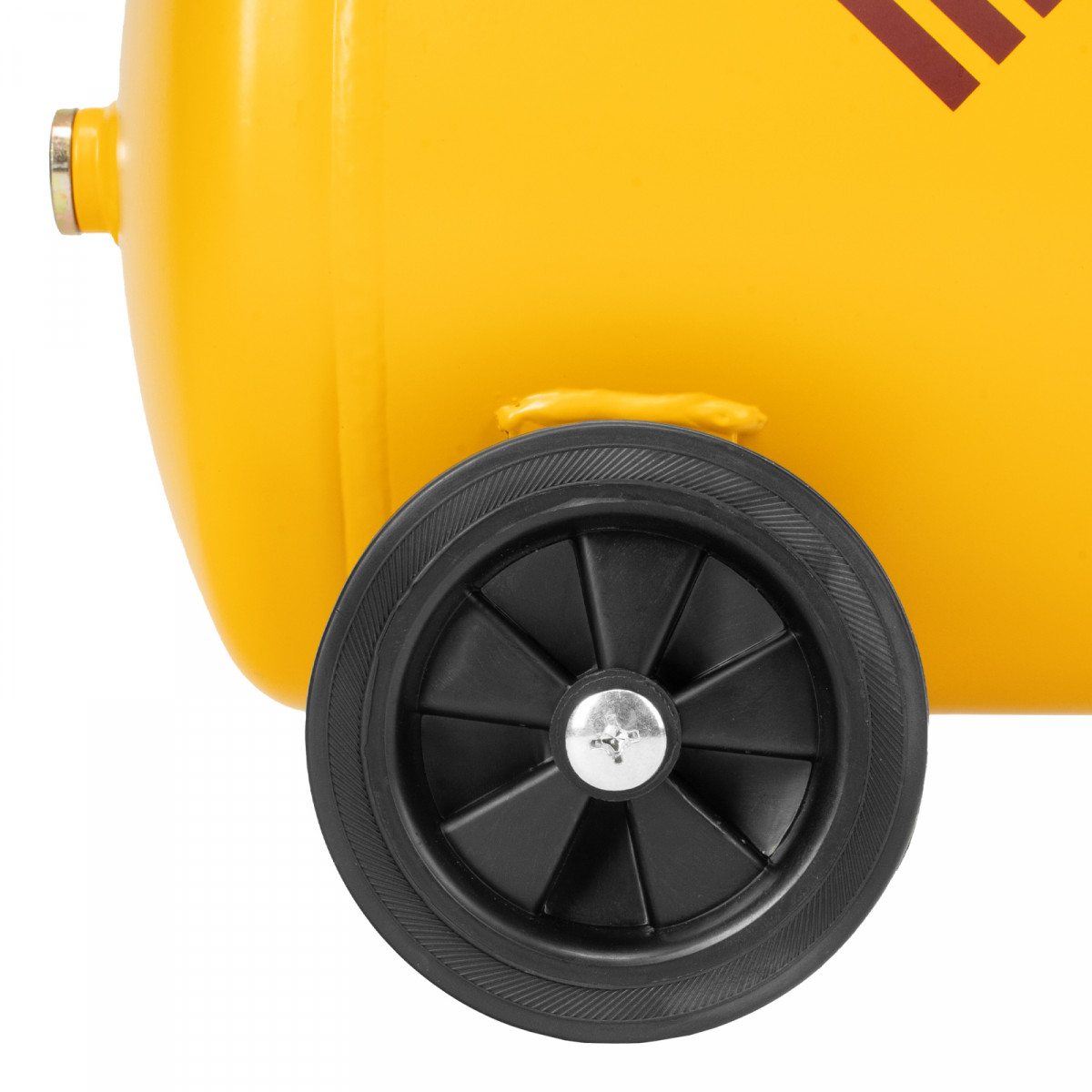 - Мобильность — 2 колеса и транспортировочная рукоятка упрощают перемещение компрессора по рабочей зоне.