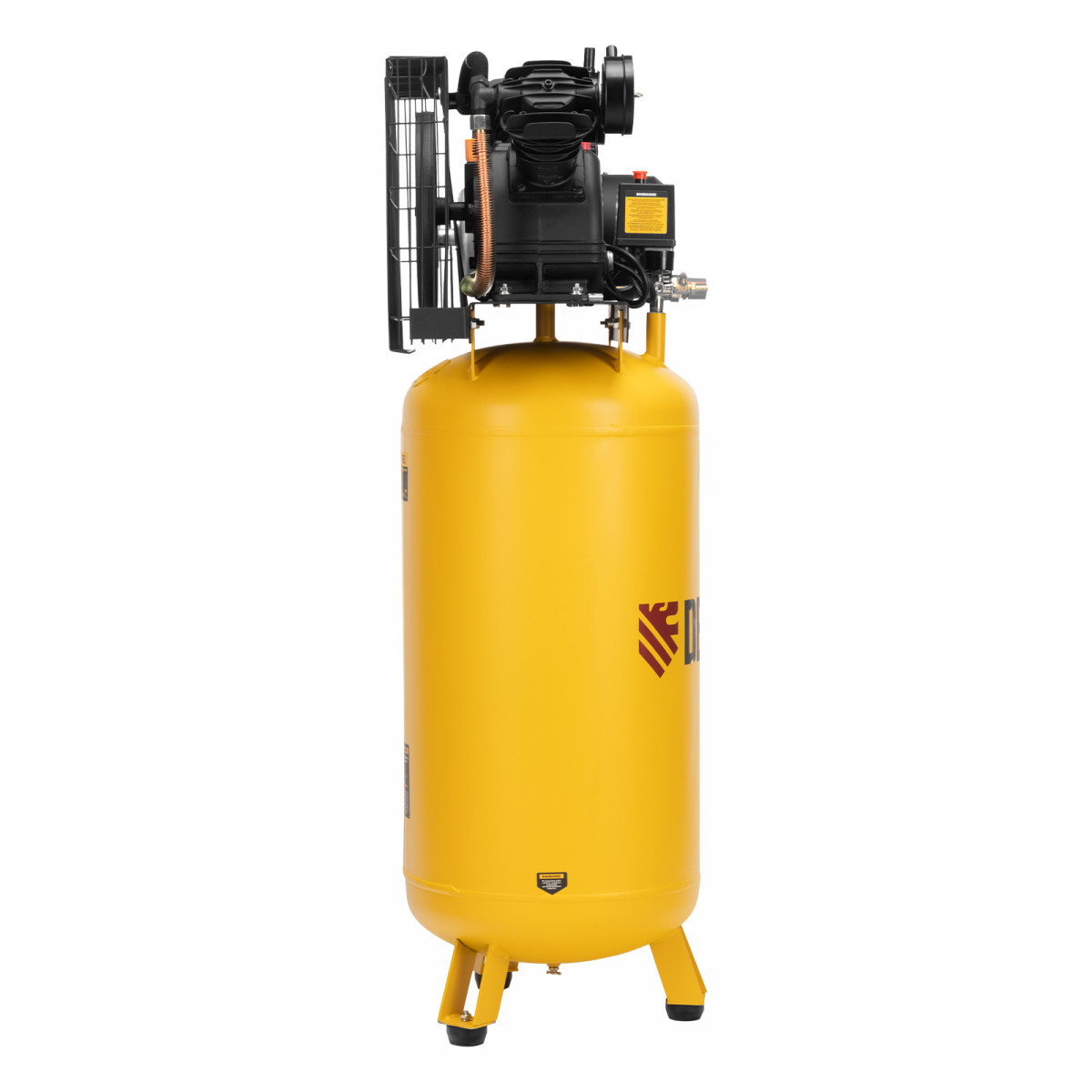 Компрессор воздушный с ременным приводом Denzel BCV2200/100V 58112 мощностью 2,3 кВт, с ресивером объемом 100 л используется для обеспечения сжатым воздухом таких инструментов, как краскораспылитель, гайковерт, гвоздезабивной пистолет, дрель, пистолет для накачки шин и пр. Высокая производительность 440 л/мин позволяет использовать его не только в загородных домах и гаражах, но и на фабриках, станциях технического обслуживания автомобилей, в различных мастерских.,Сжатый воздух накапливается в ресивере объемом 100 литров. Он располагается вертикально, что позволяет сэкономить место на рабочей площадке. Для устойчивости компрессор крепится к стене или полу.