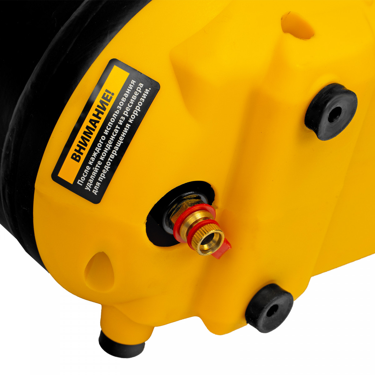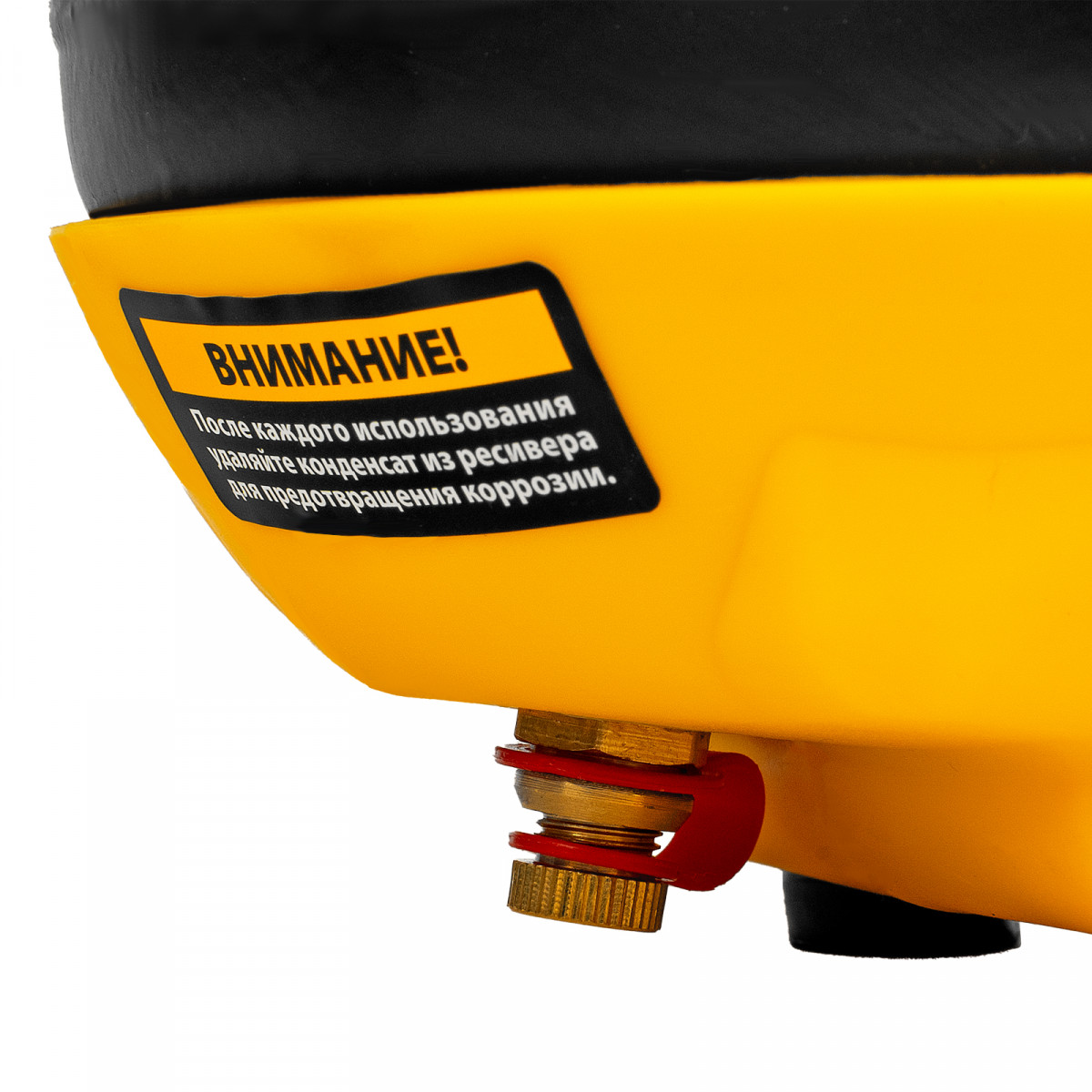 - Простое обслуживание — клапан слива конденсата позволяет оперативно удалить лишнюю влагу после окончания работы, чтобы избежать разрушения ресивера.