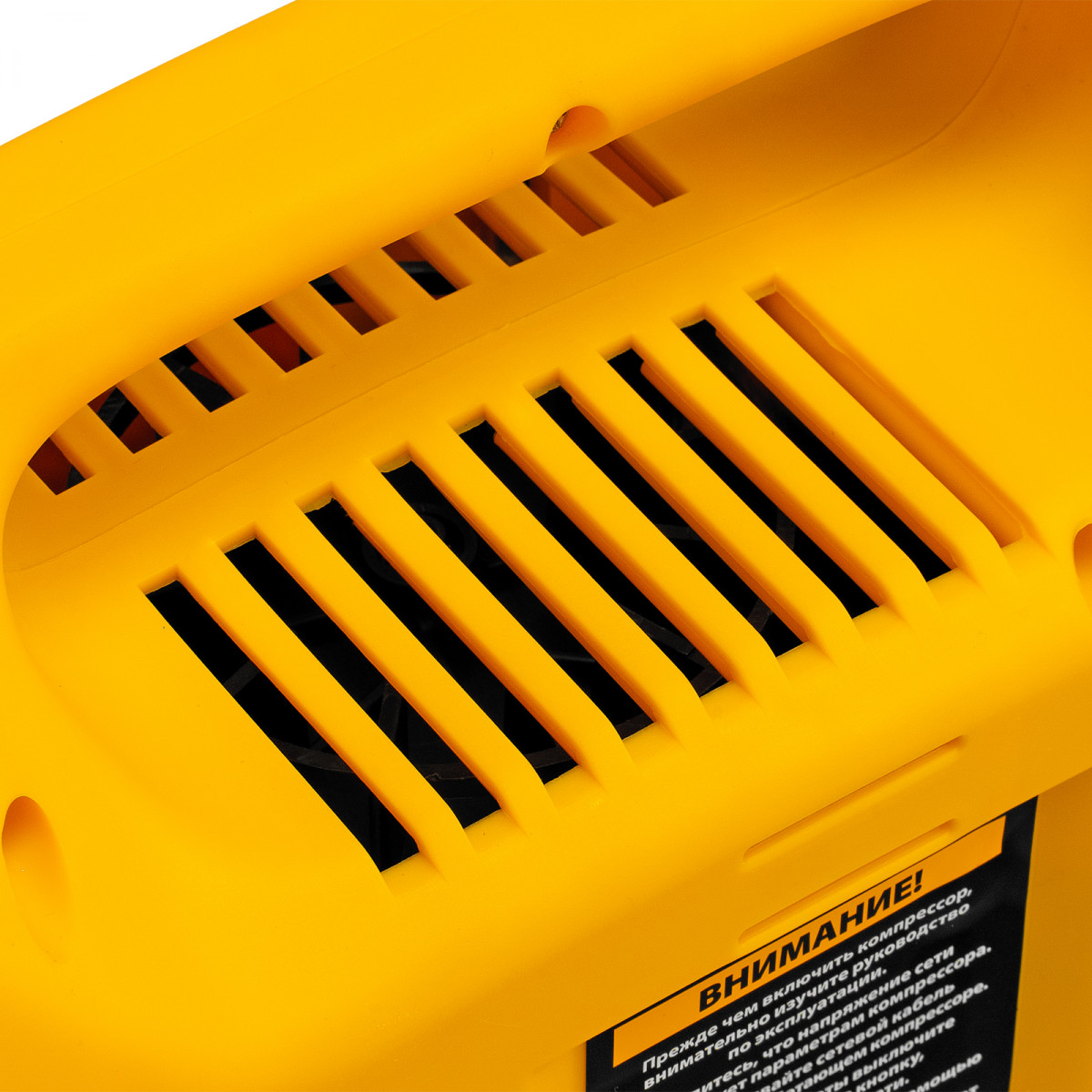- Портативное исполнение — компрессор отличается компактными размерами 45 х 40 х 20 см и малым весом 9,85 кг, не занимает много места на рабочей площадке, удобно размещается в зоне хранения и транспортировки.