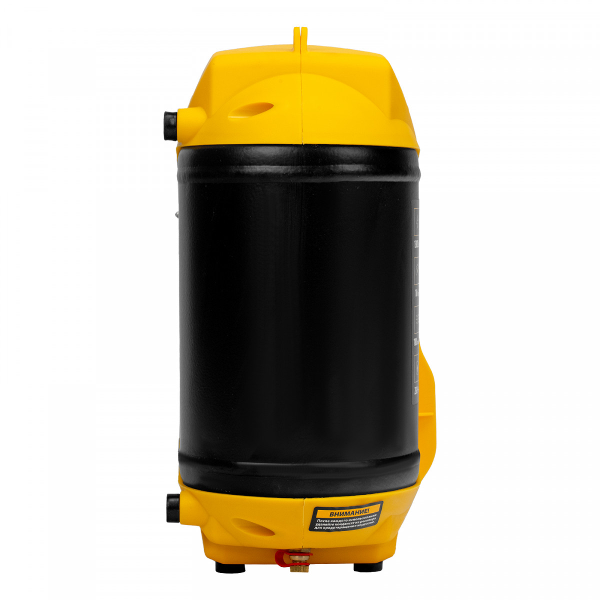 - Ресивер объемом 5 л — несмотря на портативное исполнение, устройство накапливает достаточный запас сжатого воздуха для бесперебойной работы.