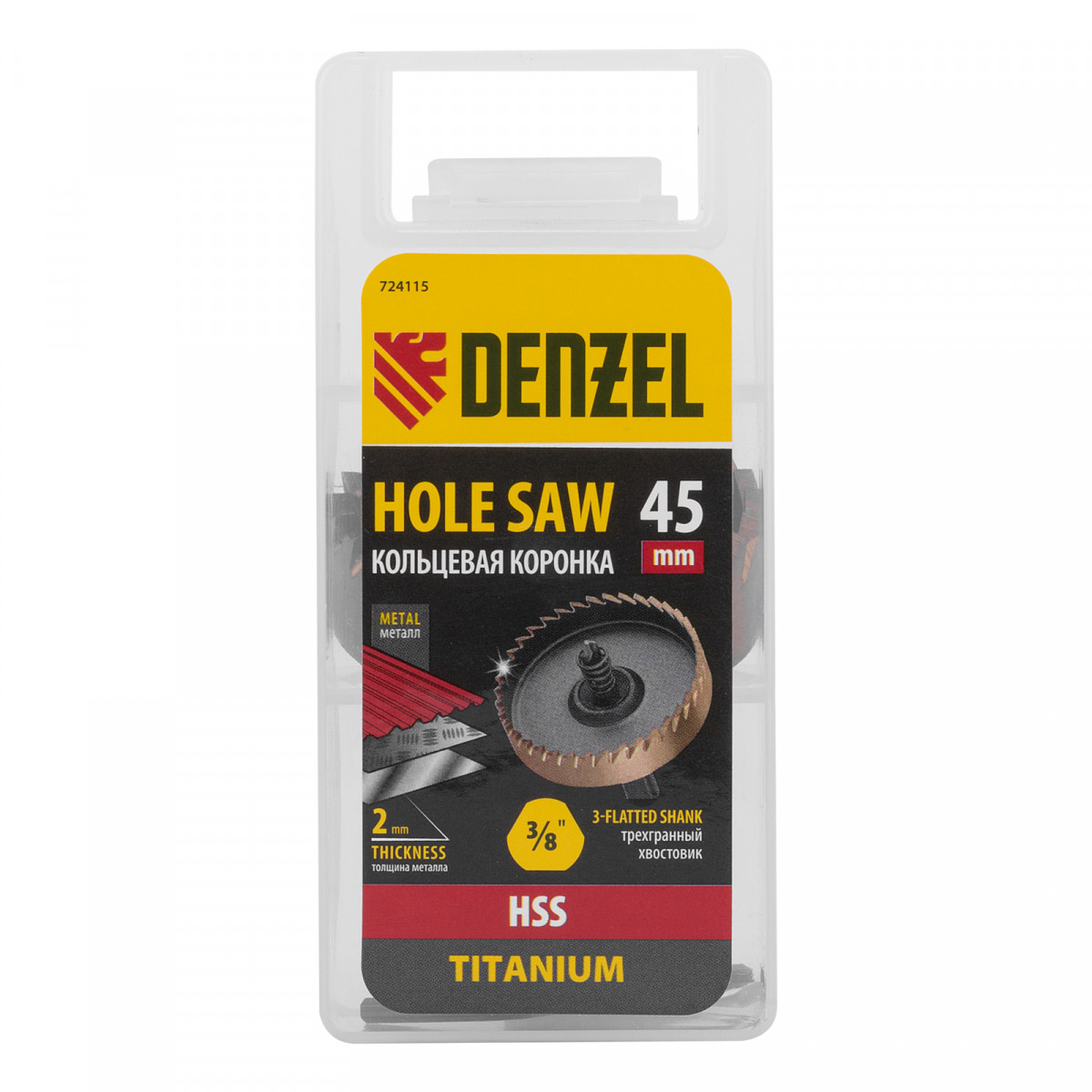 Коронка по металлу HSS, 45 мм, нитридтитановое покрытие Denzel