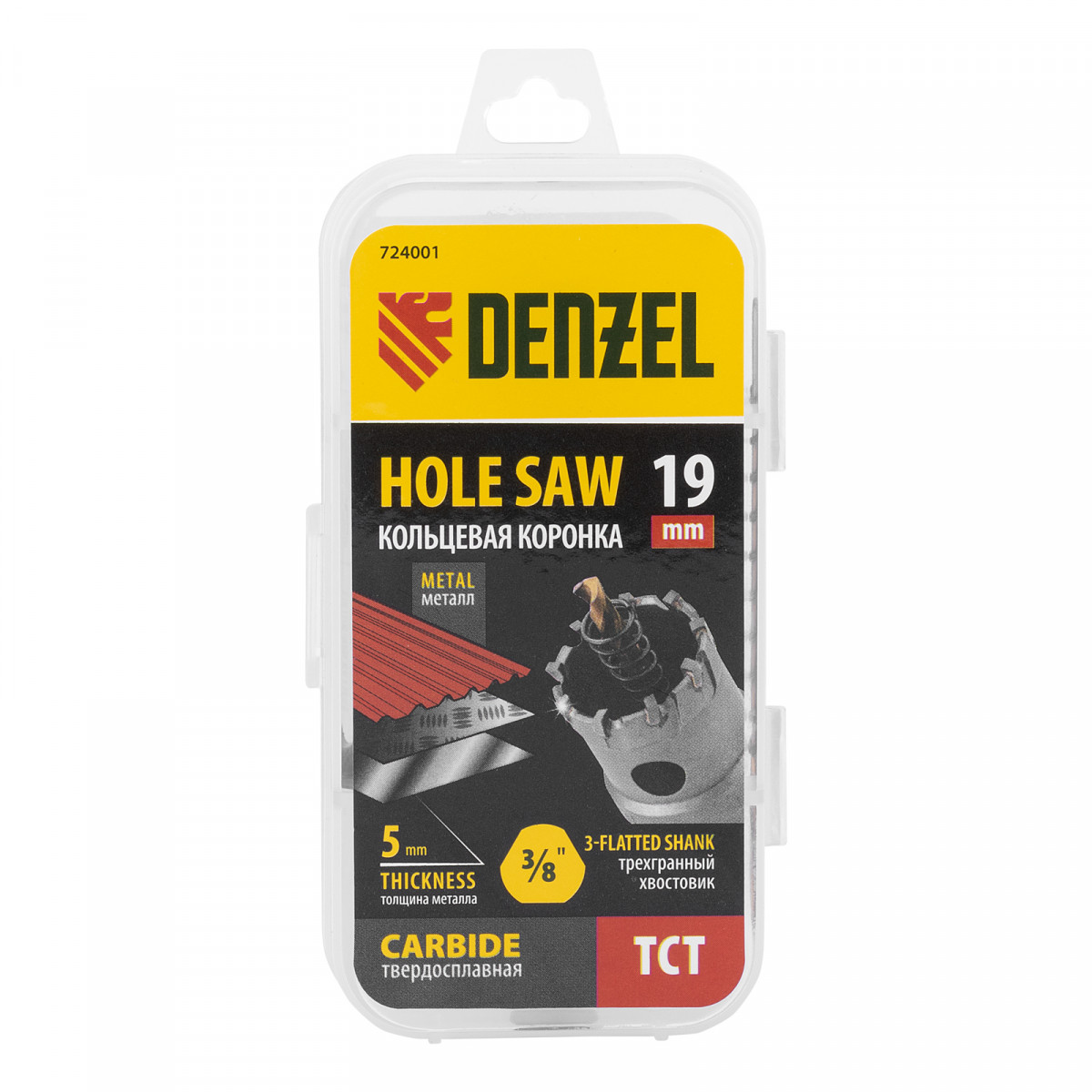 Коронка по металлу твердосплавная, 19 мм Denzel