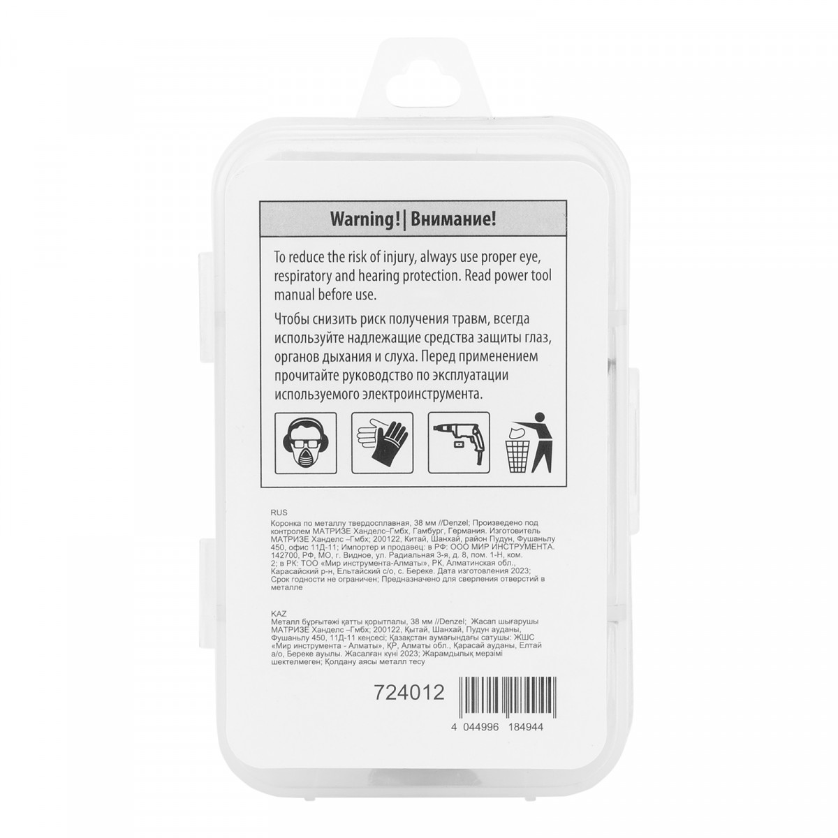 Коронка по металлу твердосплавная, 38 мм Denzel