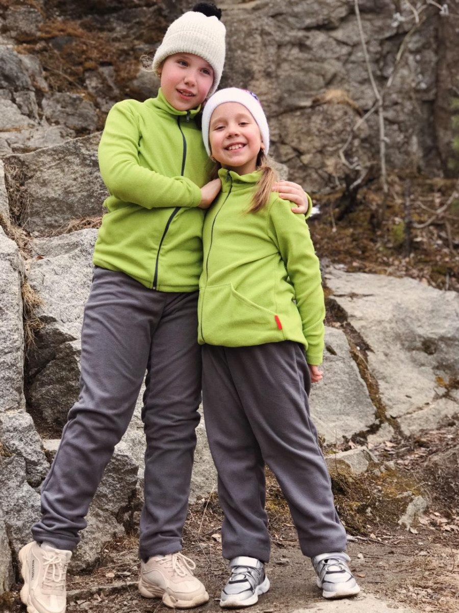 Воротник-стойка, капюшона нет. Брюки простые прямого силуэта на резинке по талии.