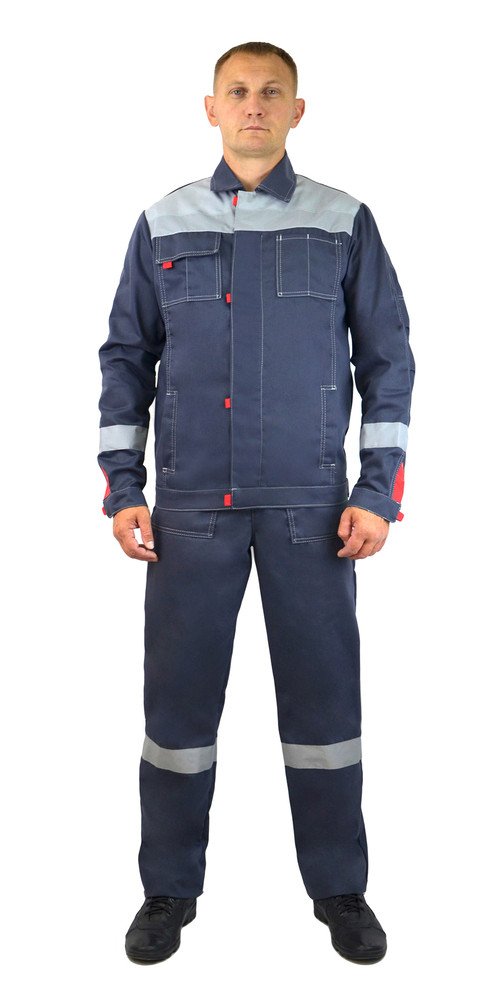 Костюм мужской летний, состоит из куртки и полукомбинезона.Куртка:- куртка укороченная с застежкой на молнию с центральной планкой, застегивающейся на липучку,
