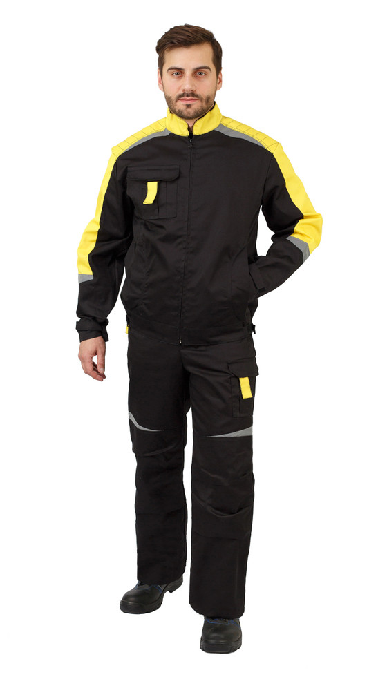 Костюм летний Мега куртка, п/к черный с желтой отделкой и СОП, тк. Твилл Формекс