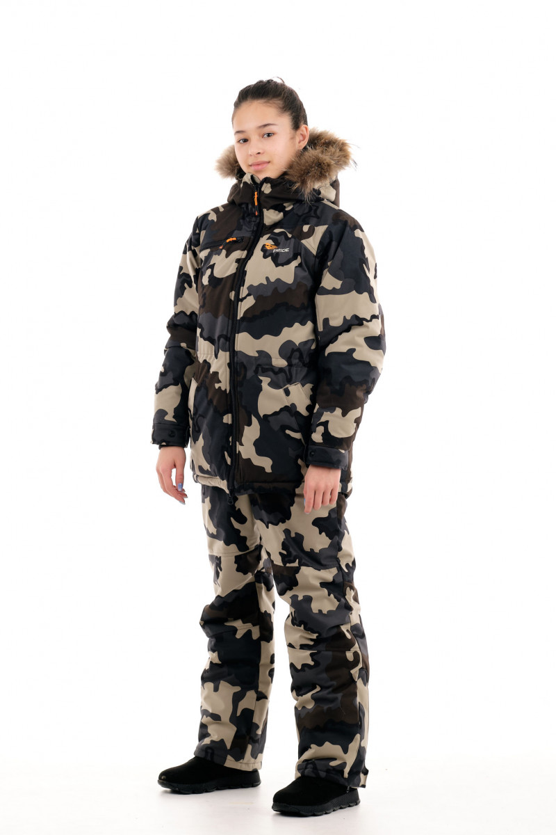 Рукава регулируются по обхвату запястья пластиковыми кнопками, для тепла и комфорта дополнены внутренними трикотажными манжетами.Высокие брюки-полукомбинезон анатомического кроя регулируются по высоте эластичными лямками.