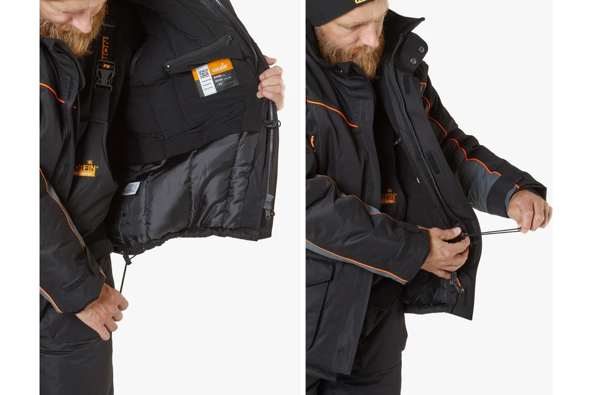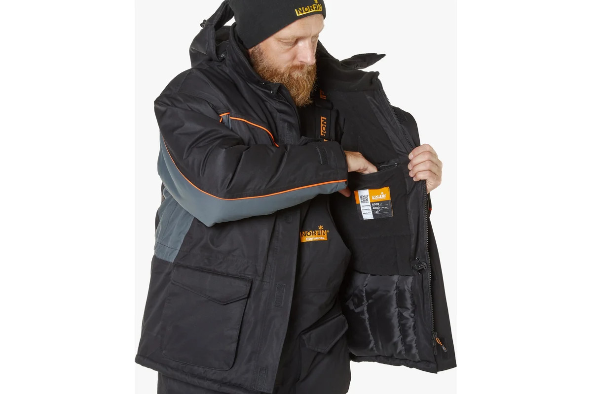 Зимний костюм NORFIN ELEMENT+, размер L, 4320-03-L - универсальный функциональный тёплый костюм, рассчитанный на эксплуатацию до температуры -35ᵒC. Состоит из куртки и полукомбинезона, сшитых из материала NORTEX BREATHABLE, обладающего водонепроницаемостью 6 000 мм и дышащей способностью 4 000 г/м²/24 час, и дополненных утеплителем THERMO GUARD.