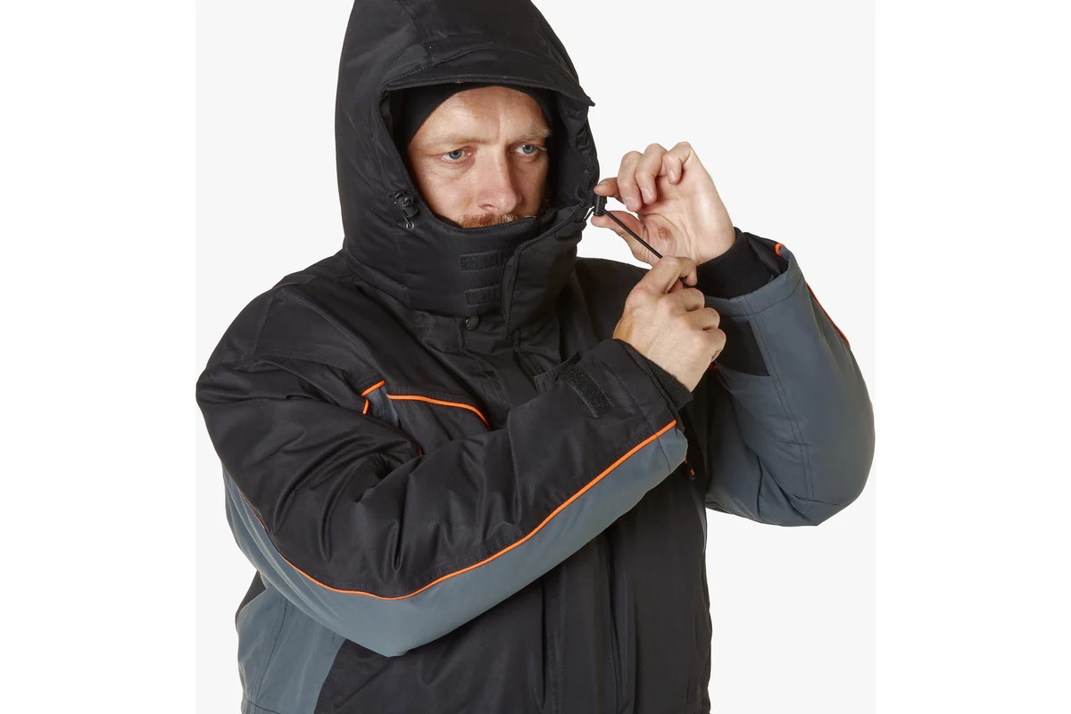 Куртка оснащена двухзамковой застежкой-молнией с клапаном на «липучке», капюшоном с козырьком и двухуровневой регулировкой, высоким воротником с флисовой подкладкой, внутренними эластичными и наружными регулируемыми манжетами на рукавах, утепленными внутренними и удобными наружными карманами. Есть возможность регулировки объема куртки в области талии. Для безопасности предусмотрены светоотражающие элементы.