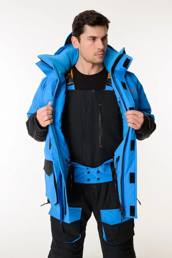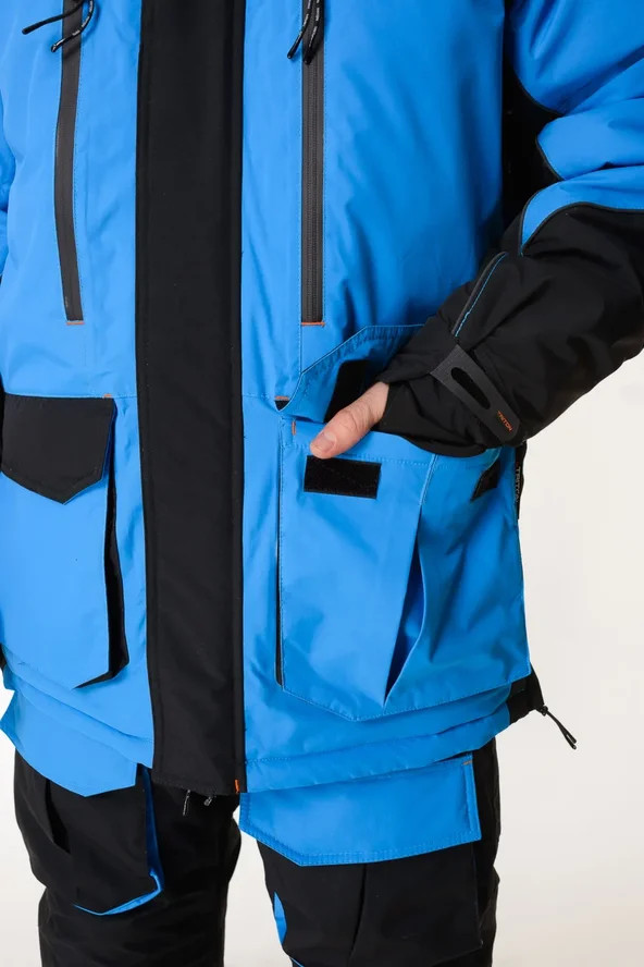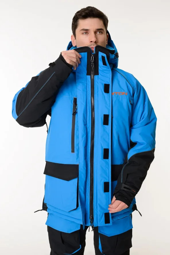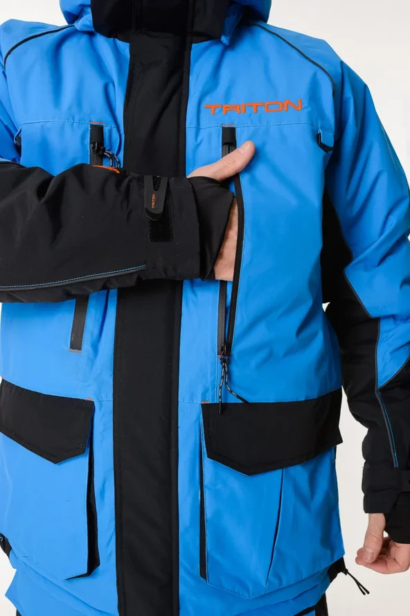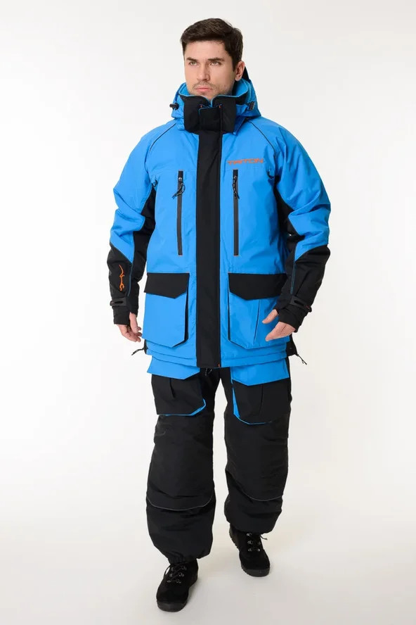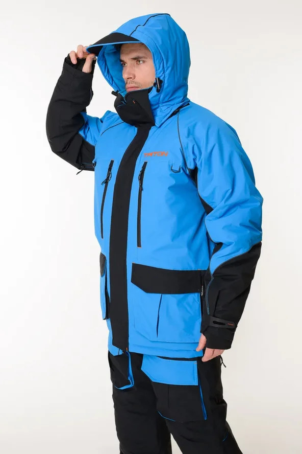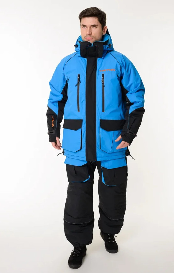 Костюм Тритон "Yakutiya Pro" -50 ПК предназначен для зимней рыбалки, катания на снегоходе, а так же работы в самых холодных погодных условиях. На куртке и полукомбинезоне имеется 11 карманов - как внешних, так и внутренних, для размещения всех необходимых принадлежностей, что повышает его функциональность при занятиях любимым увлечением. Изготовлен из качественного современного материала Таслан (100% нейлон) - долговечной, устойчивой к истиранию и многократным изгибам мембранной ткани нового поколения с высокими показателями паропроницаемости и водостойкости (10000/10000). Сочетает в себе теплоизолирующие, ветро- и влагоустойчивые показатели и прочность наружного слоя. Внешняя поверхность блокирует ветер, а внутренний слой ткани защищает от избыточной влаги. Цвет комбинированный синий/серый. Утеплитель нового поколения TRITERM SISTEM из ультратонких полиэстеровых волокон делает костюм лёгким, тёплым и долговечным, отлично сохраняет тепло даже во влажном состоянии, хорошо пропускает испарения от тела.