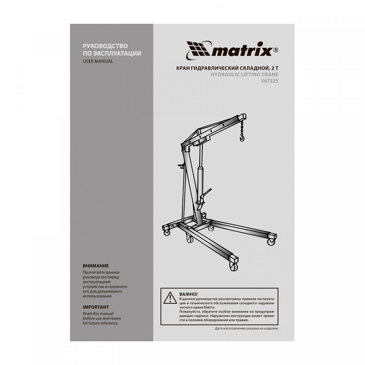 Кран гидравлический, 2 т, H подъема 25-2200 мм, складной (комплект из 2 частей) Matrix