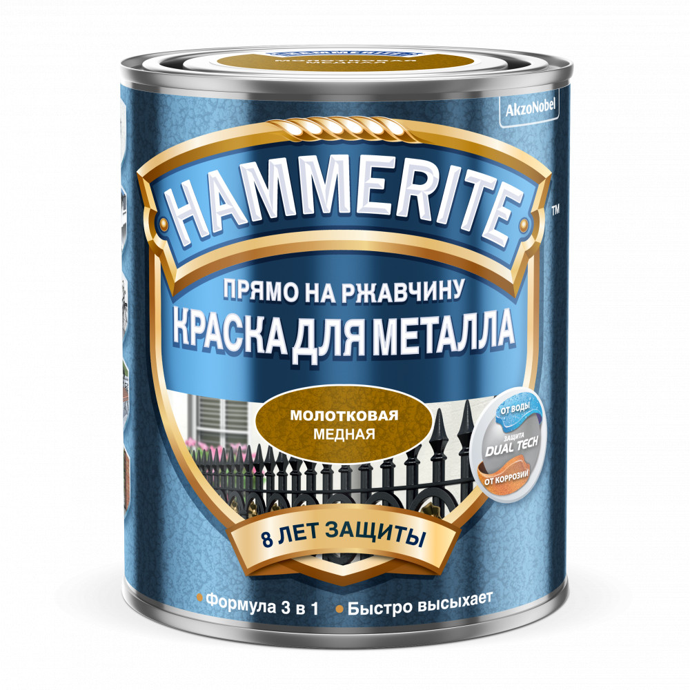 Краска Hammerite молотковая медная 0,75л по металлу прямо на ржавчину 3в1