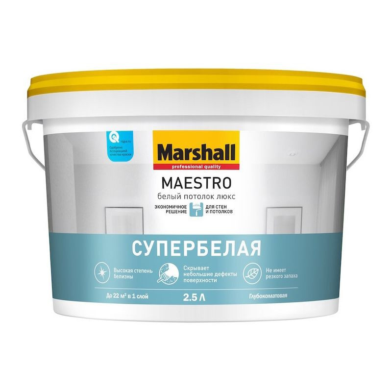 Краска Marshall MAESTRO Белый потолок люкс белая 2,5л