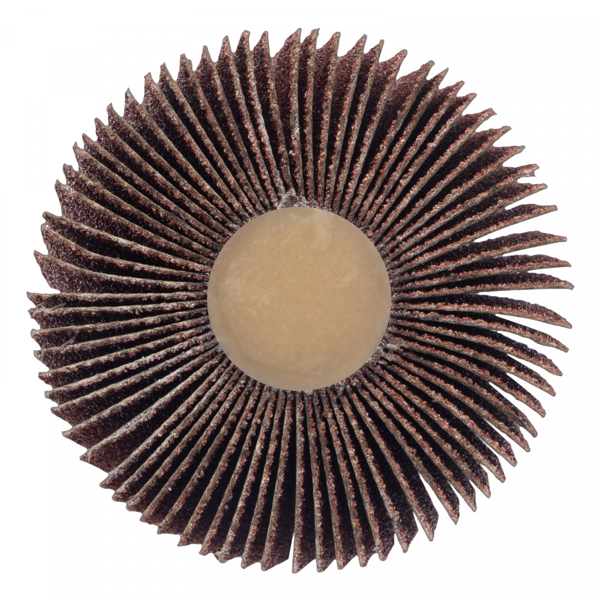 - Надежность — лепестки из прочной х/б ткани прикреплены к оправке при помощи бакелитовой смолы, поэтому круг устойчив к трению и давлению.