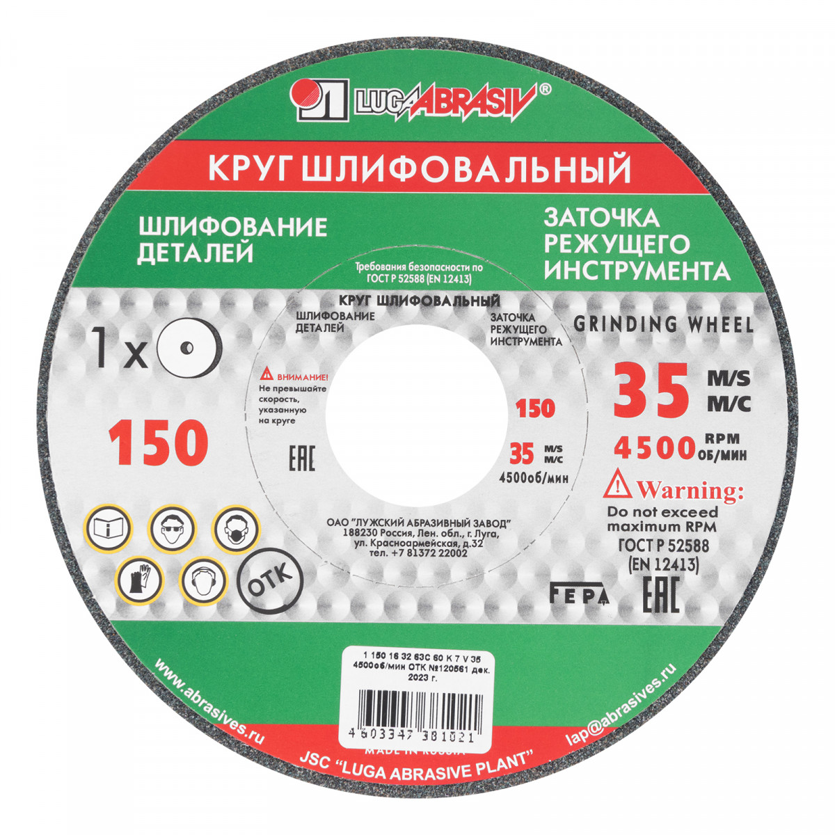 Круг шлифовальный, 150 х 16 х 32 мм, 63С, F60, (K, L) "Луга"