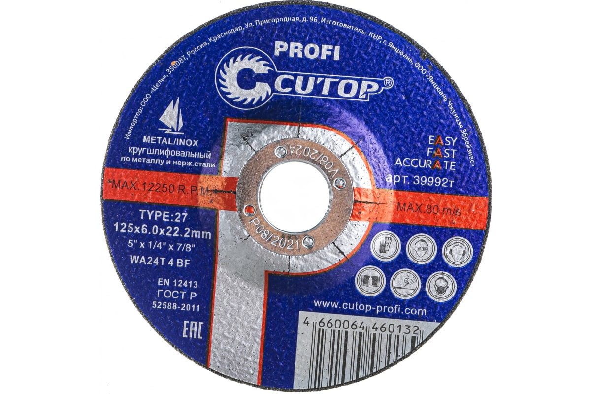 Диск T27 CUTOP является сменным элементом для угловых шлифовальных машин. Применяется для шлифования по черным и цветным металлам. Диск обладает высокой производительностью и большим ресурсом работы. Оснастка изготавливается на современном оборудовании под строгим контролем качества.Предназначен для зачистки деталей и конструкций из различных марок сталей, сварных швов. Устанавливается на шлифмашину угловую.