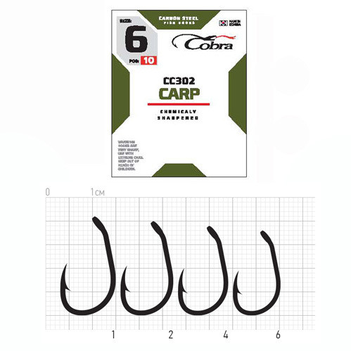 Крючки Cobra CARP сер. CC302 разм.006 10шт. с лопаткой