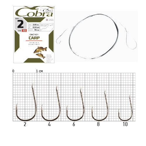 Крючки с поводком Cobra CARP 70cm, 0,18mm, разм.6, 10шт.