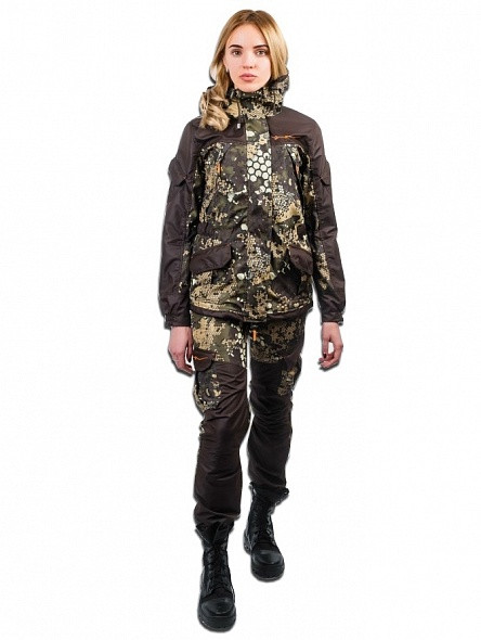 Основная ткань - с пиксельным рисунком "Triton", являющимся имиджевым элементом, из материала Дюспа бондинг – это плотный, мягкий на ощупь, легкий двуслойный материал из полиэстеровых волокон. Верхний слой – это плащевая ткань Дюспа (100% полиэстер), внутренний – трикотажное полотно. Слои надежно скреплены на PU ( полиуритановой) пропитке. Характеризуется отличными воздухопроницаемыми и ветрозащитными свойствами.Материал отделки - таслан "Кошачий глаз" (100% нейлон) - долговечная, устойчивая к истиранию и многократным изгибам мембранная ткань нового поколения с высокими показателями паропроницаемости и водостойкости (10000/10000). Цвет зеленый.Комбинированный подкладочный материал сетка/таффета (100% полиэстер) - ткань со сквозной ячеистой структурой, применяется в местах, требующих повышенной воздухопроницаемости и влагоотвода.Из-за своей универсальности Горка - крайне популярная и востребованная модель, с успехом используется представительницами прекрасного пола для походов в лес и горы, для активного