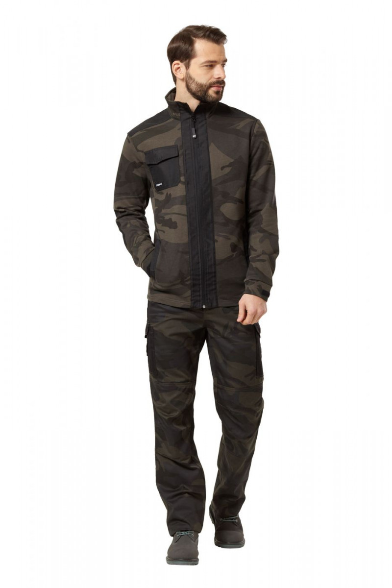 Куртка-толстовка летняя и демисезонная из трикотажного полотна цвета хаки, с отделкой тканью Оксфорд черного цвета, для защиты от общих производственных загрязнений.• Силуэт: полуприлегающий