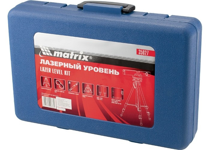 Лазерный уровень, 400 мм, 850 мм штатив, 3 глазка, (база, 2 линзы, очки) пластиковый бокс Matrix