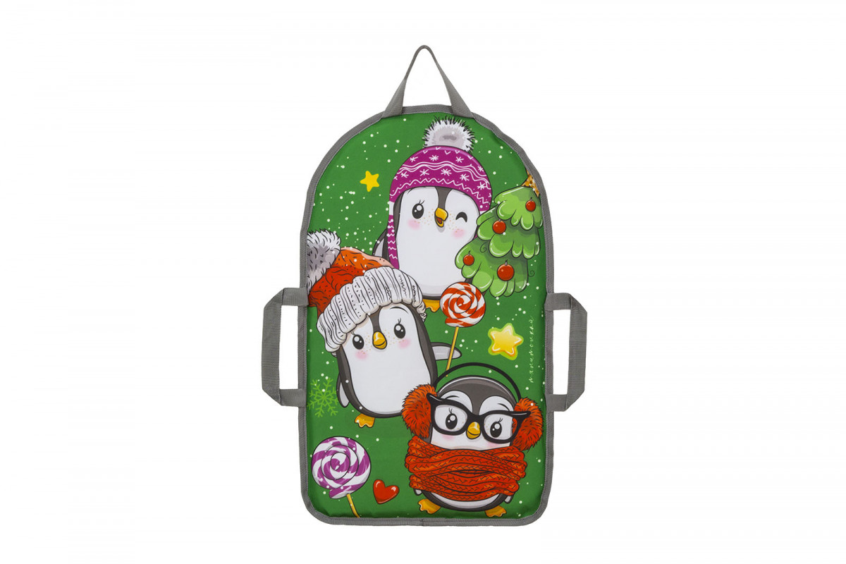 Ледянка изготовлена из плотного влагозащитного материала OXFORD 600D с водоотталкивающей пропиткой, который устойчив к морозам до 25 градусов. Низ изготовлен из тента, глянцевая поверхность материала позволяет отлично скользить по снежной поверхности. Для удобного катания предусмотрены ручки-держатели из усиленной стропы.
