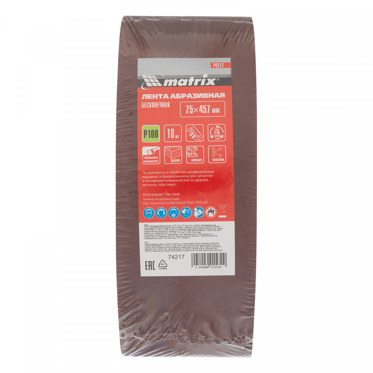 Лента абразивная бесконечная, P 100, 75 х 457 мм, 10 шт Matrix