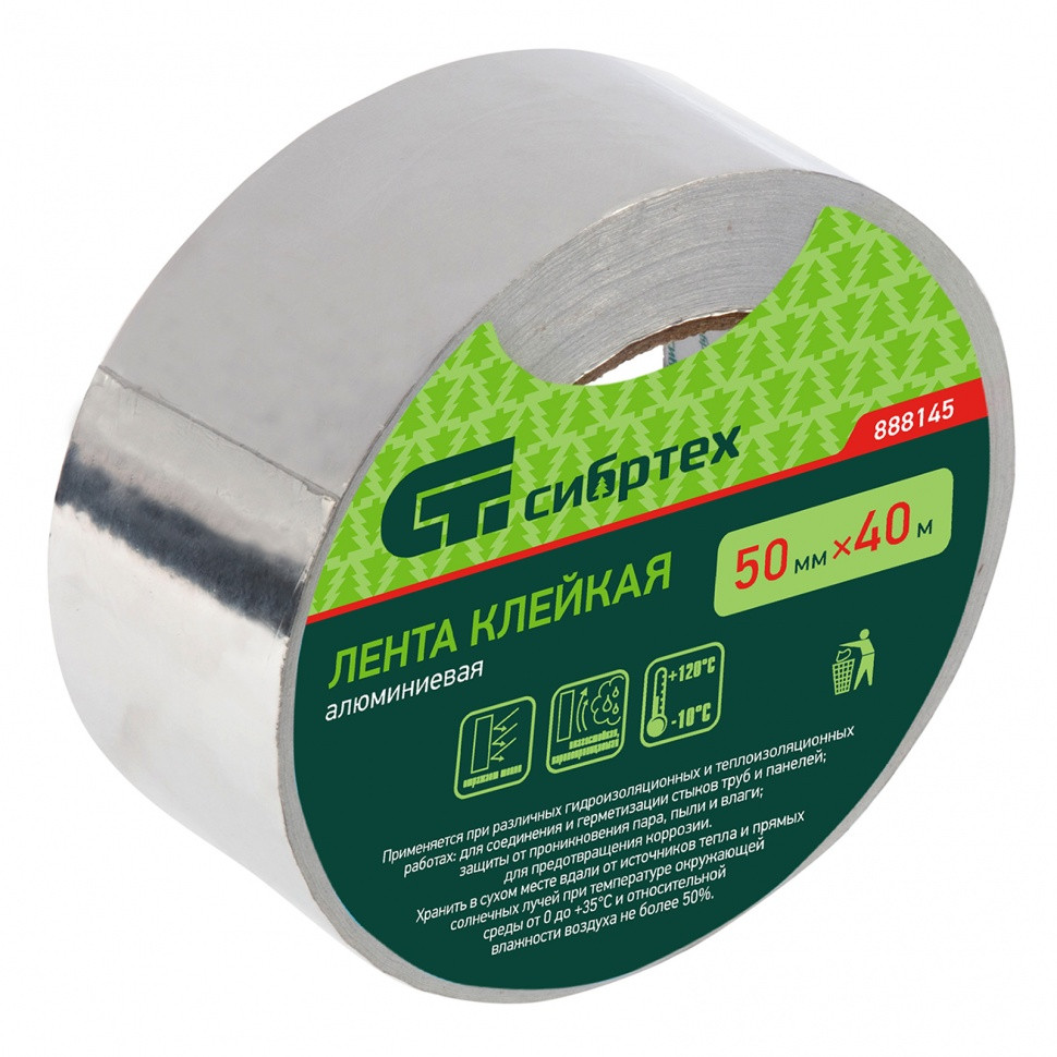 Лента клейкая алюминиевая, 50 мм х 40 м Сибртех