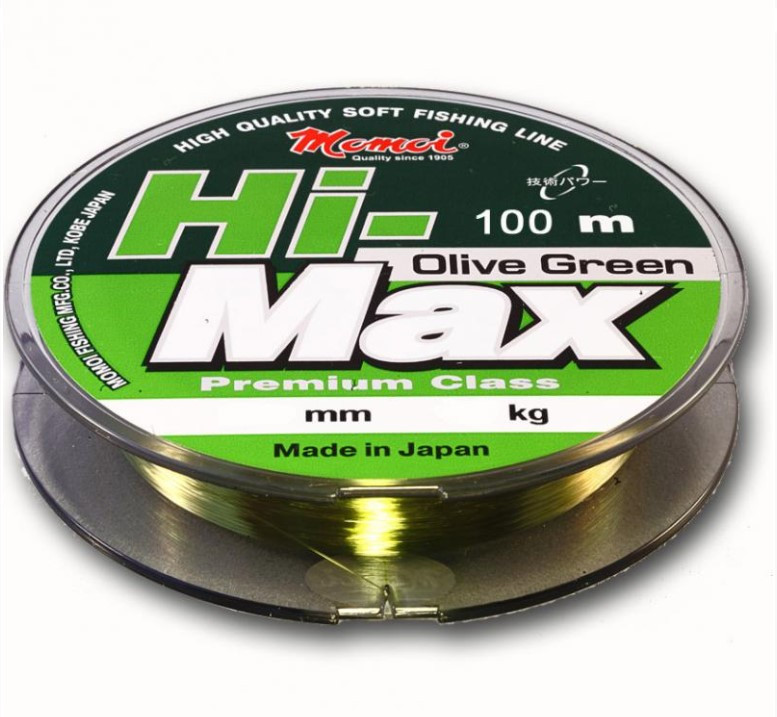 Универсальная рыболовная леска Hi-Max Olive Green от Momoi Fishing для всех видов ловли.