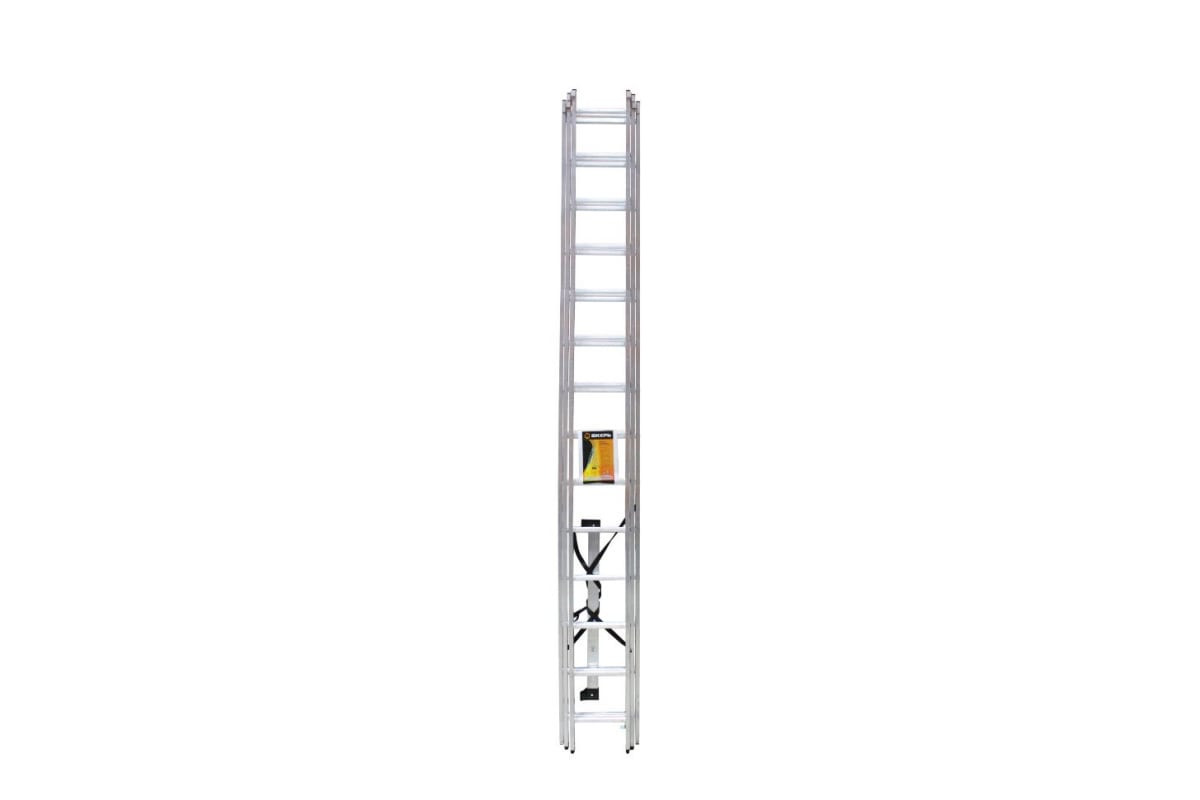 Трёхсекционная алюминиевая лестница предназначена для выполнения различных работ на высоте до 10.86 метров. Модель выполнена из алюминия и имеет антикоррозийное покрытие, что гарантирует надежность и долгий срок службы. Широкая поперечная траверса обеспечивает устойчивость стремянки и безопасную работу. Для предотвращения скольжения по поверхности на стойках и траверсе предусмотрены пластиковые наконечники.