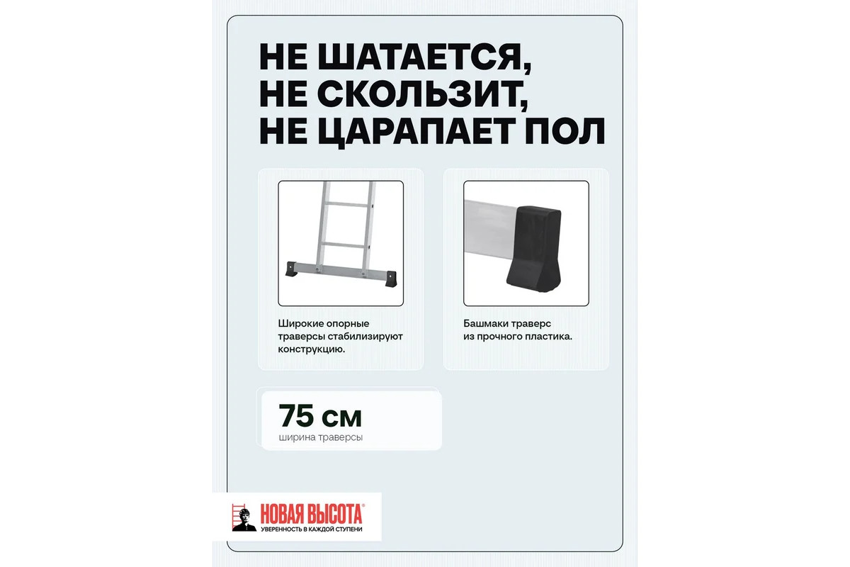 - Преимущества Новая Высота Лестница сделана из алюминиевого профиля - прочность и надежность;