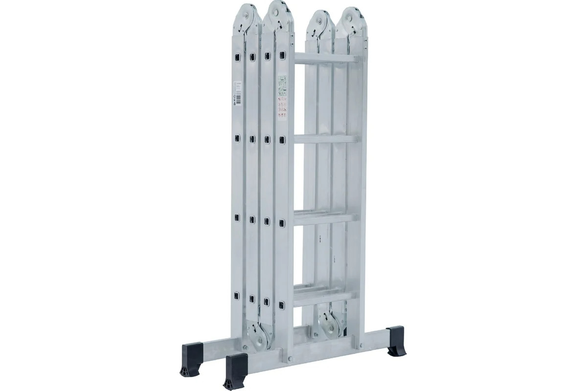 Четырехсекционная лестница-трансформер Новая Высота 4х4 ступени отлично подойдёт для ремонтных работ. Многофункциональность. Лестница легко преобразуется в помост, стремянку, приставную лестницу, приставную согнутую лестницу. Качество. Модель оснащена стойками с дополнительным усилением в наиболее нагруженных местах для повышения жесткости. Удобство. Шарнирные замки регулируются одной рукой. Долговечность. Благодаря многократной развальцовке в соединении ступеней со стойками изделие имеет долгий срок службы.