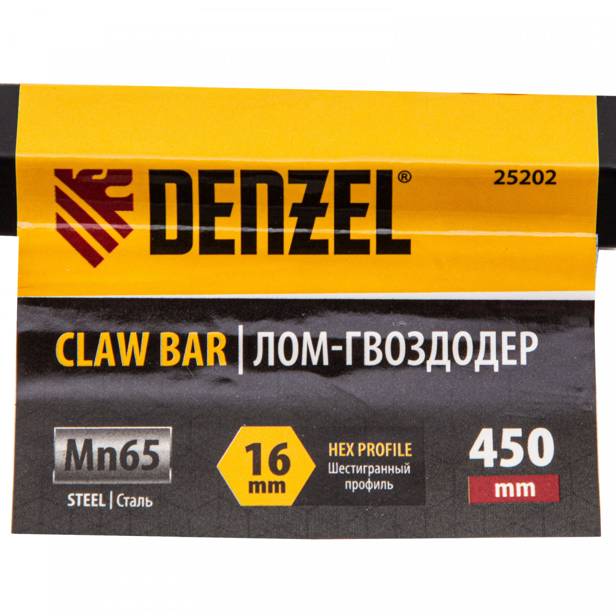 Лом-гвоздодер, 450 мм, шестигранный 16 мм, окрашенный, сталь 65 Denzel