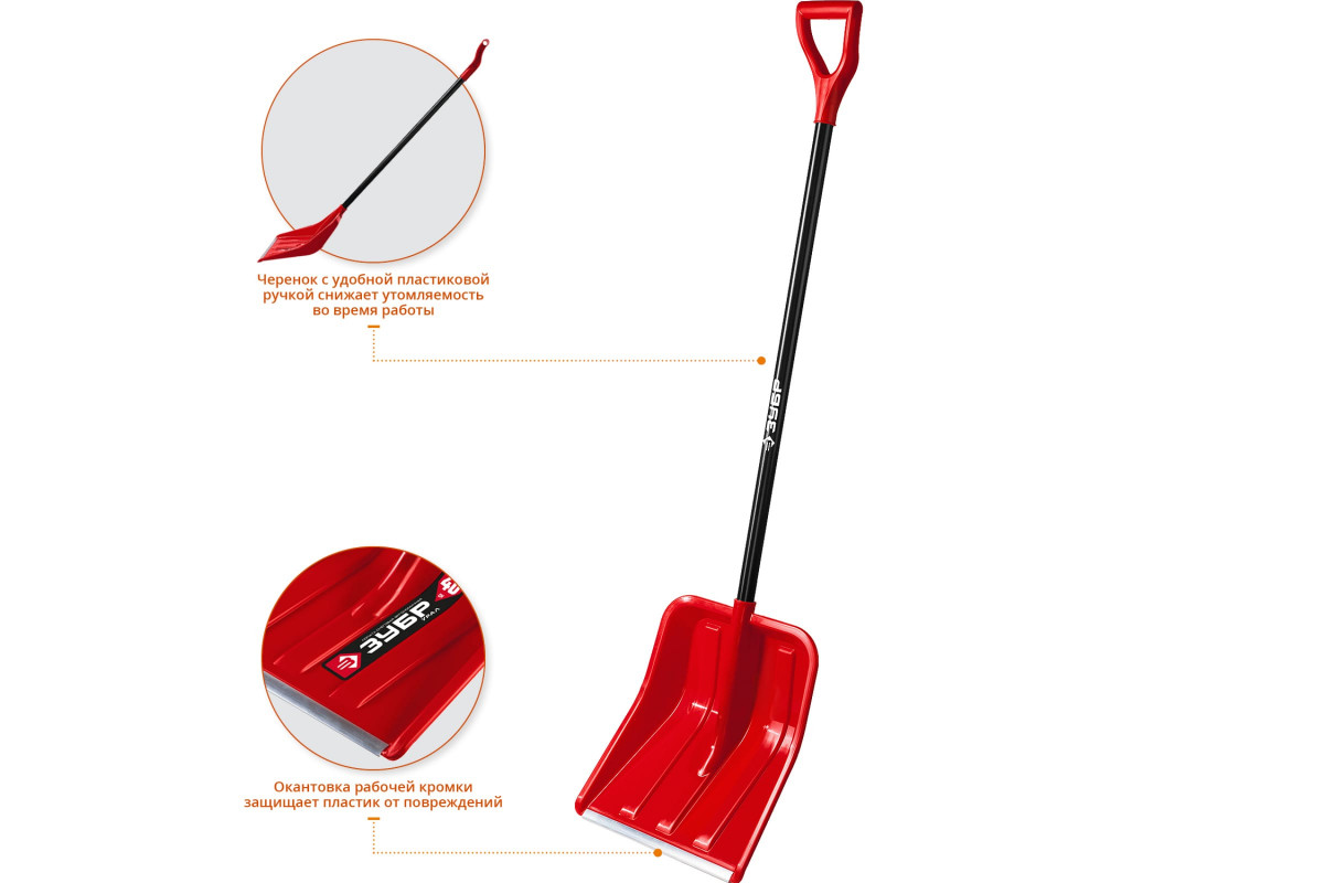 Лопата снеговая пластиковая ЗУБР УРАЛ 400 мм со стальной планкой эргономичный алюм черенок V-ручка