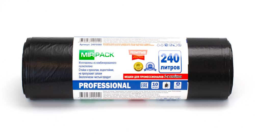 Мешки д/мусора 240 л 10 шт MIRPACK PROFESSIONAL ПВД (35мкм)